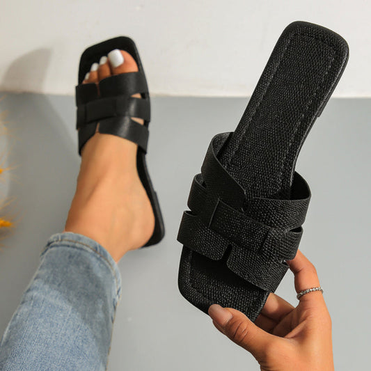 Fleur- Sandales à talons plats style bohème décontractées pour femmes