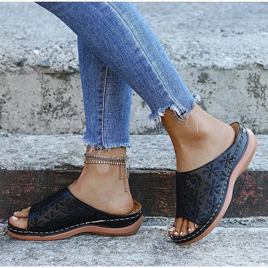 ALBA- Sandales en cuir respirantes et compensées pour femmes